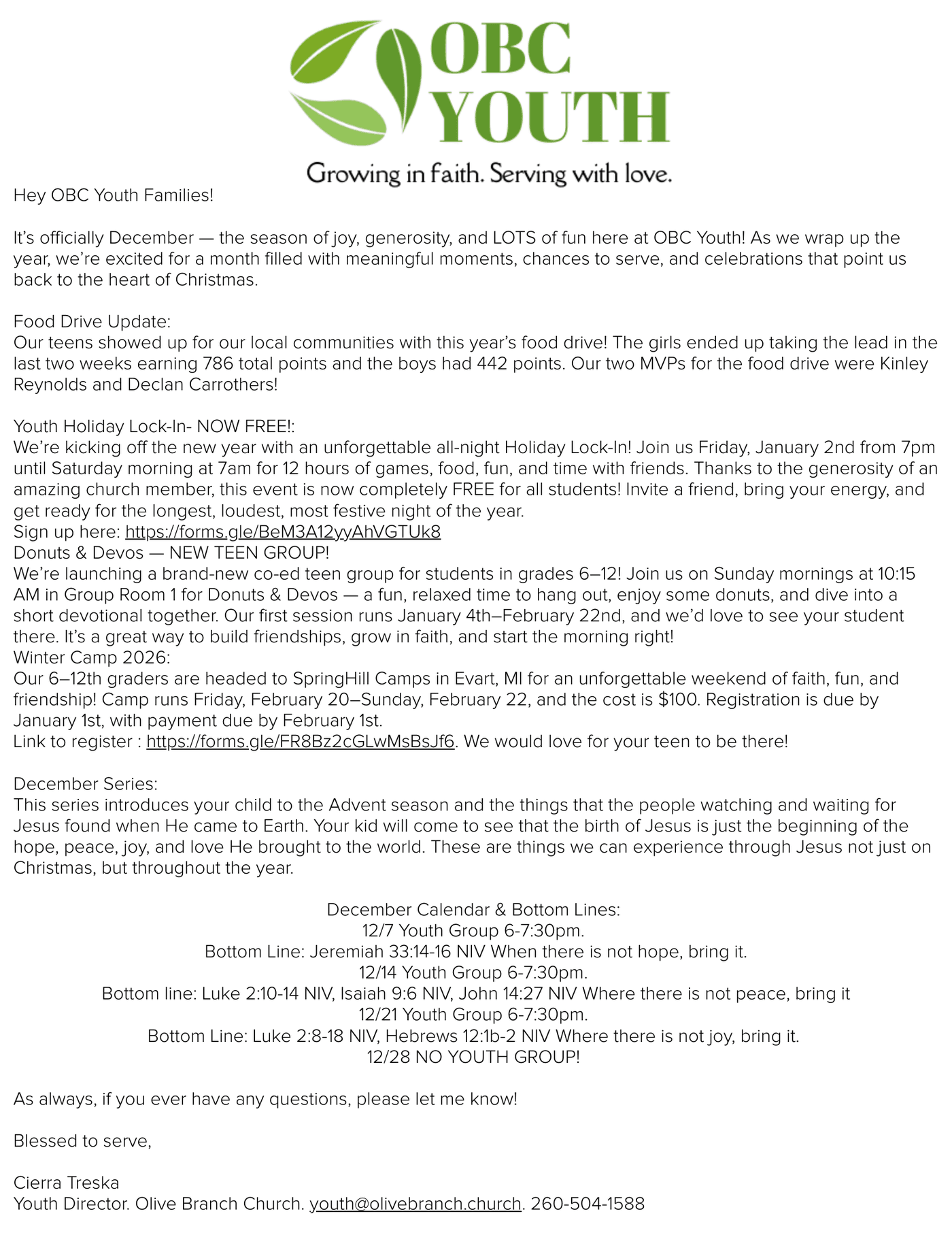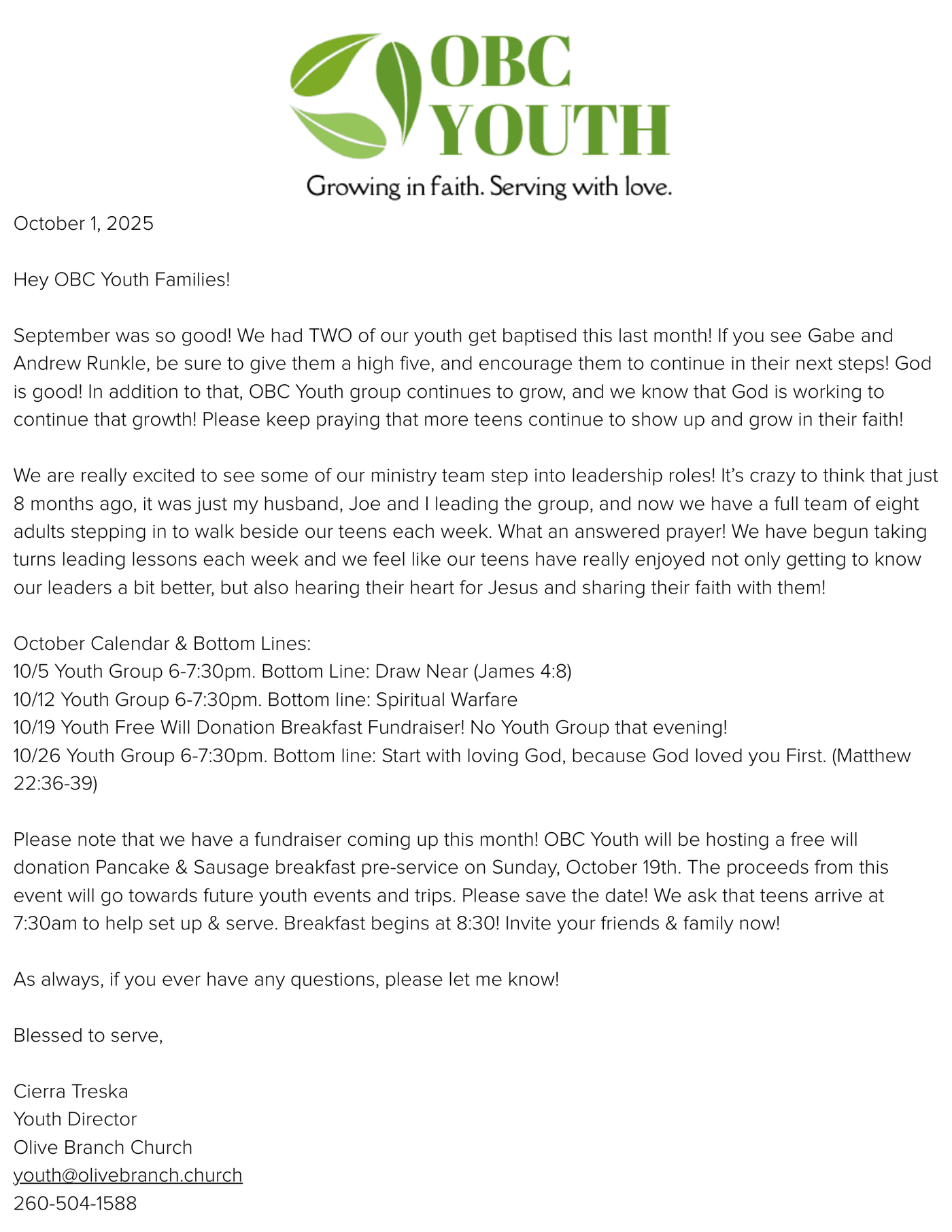 Have questions or want to know more about OBC Youth? Click here to contact Cierra.
